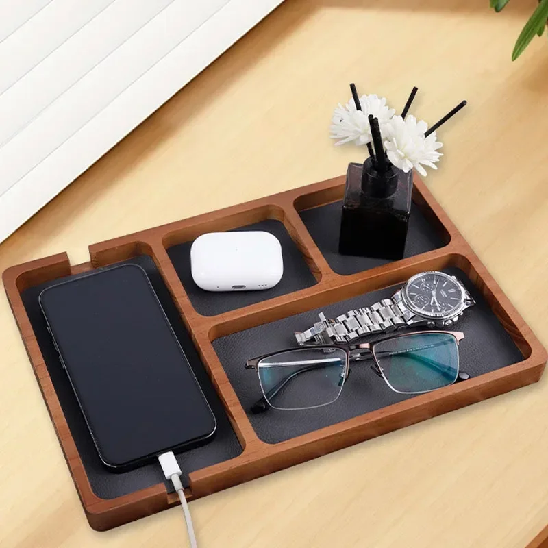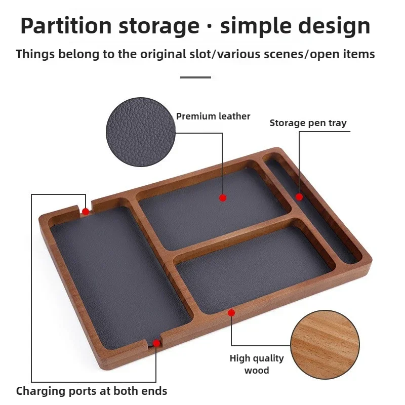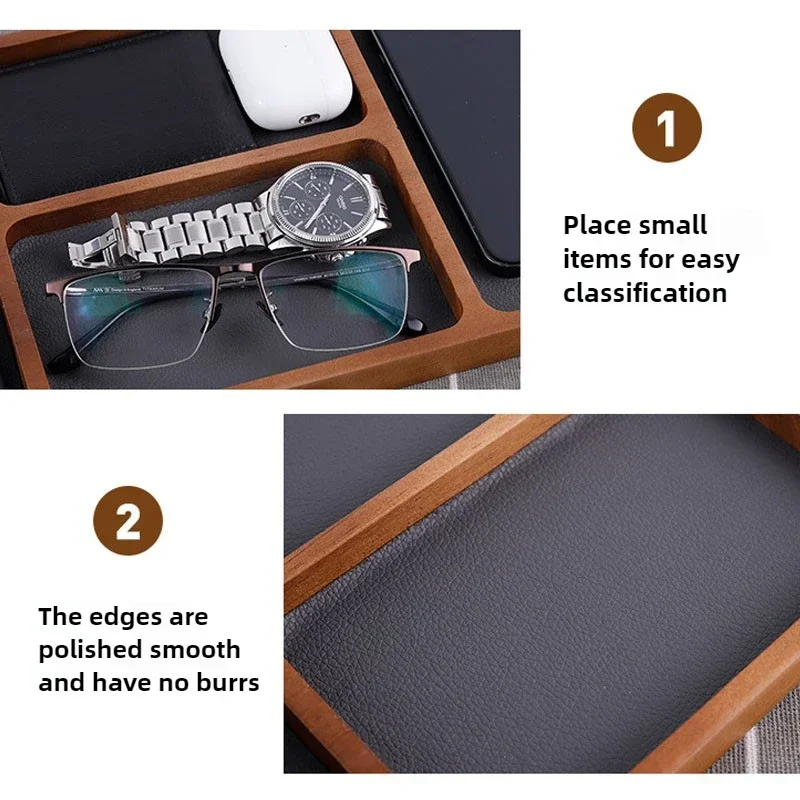 Clear zoning: Design multiple separate areas to classify and place different items such as mobile phones, wallets, headphones, watches, etc., making the items orderly and easy to find.